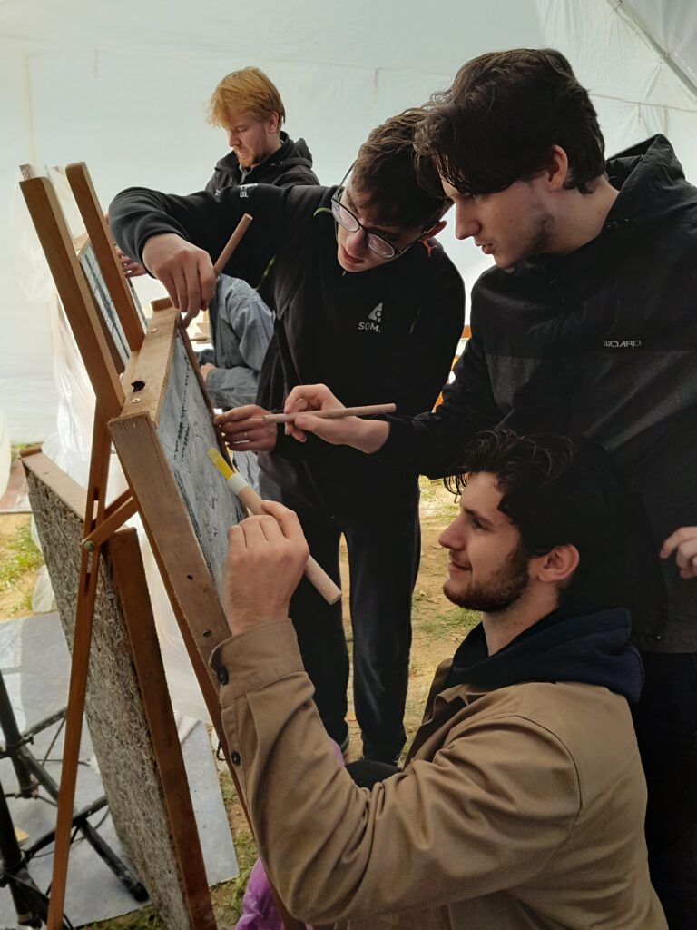 Ve středu 2. 11. se sedmičlenná skupina studentů naší školy vydala do nedaleké obce Kámen, kde si pro ně Muzeum Vysočiny Pelhřimov připravilo, v souvislosti s dokončením rozsáhlé rekonstrukce zdejší barokní kaple, zajímavý celodenní program. Po dopolední kunsthistorické přednášce o vývoji sakrálních prostor a diskusi o významu duchovna v dnešním světě a v našich životech nám odpolední čas vyplnil restaurátorský workshop, v němž jsme si vyzkoušeli techniku fresky a sgrafita a seznámili se s postupem výroby mozaiky.