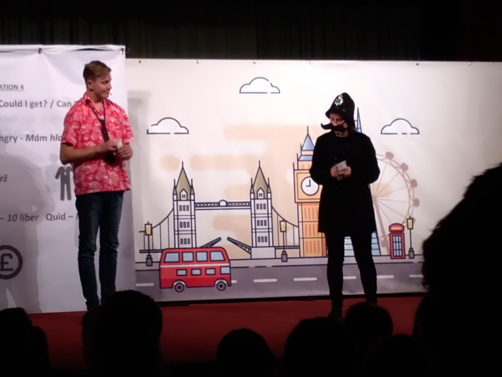 V úterý 2. října navštívili studenti septimy a oktávy anglické divadelní představení v Pelhřimově. Jednalo se o výukové představení skupiny The Easy English Theatre, při kterém rodilí mluvčí používali anglické výrazy běžné v každodenním životě. Snažili se tímto způsobem přiblížit reálné situace, do kterých se lidé denně dostávají. Hra zachycovala jeden den v životě mladého Angličana Chrise, který se střetával s různými lidmi v různých situacích, což přinášelo spoustu humorných momentů. Do děje byli vtaženi také diváci, takže někteří dostávali své malé role i na jevišti.