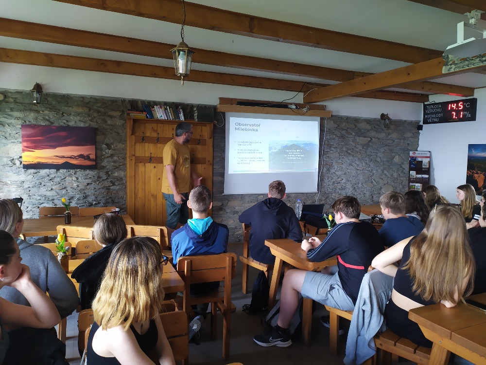 V pátek 2. 6. proběhla biologicko-zeměpisná exkurze tercie a kvinty do Ústeckého kraje. První zastávkou byla hora Říp i s prohlídkou rotundy Sv. Jiří a Sv. Vojtěcha, druhou částí byl výstup na Milešovku, nejvyšší horu Českého středohoří, a přednáška o meteorologických jevech a měřeních na této stanici.