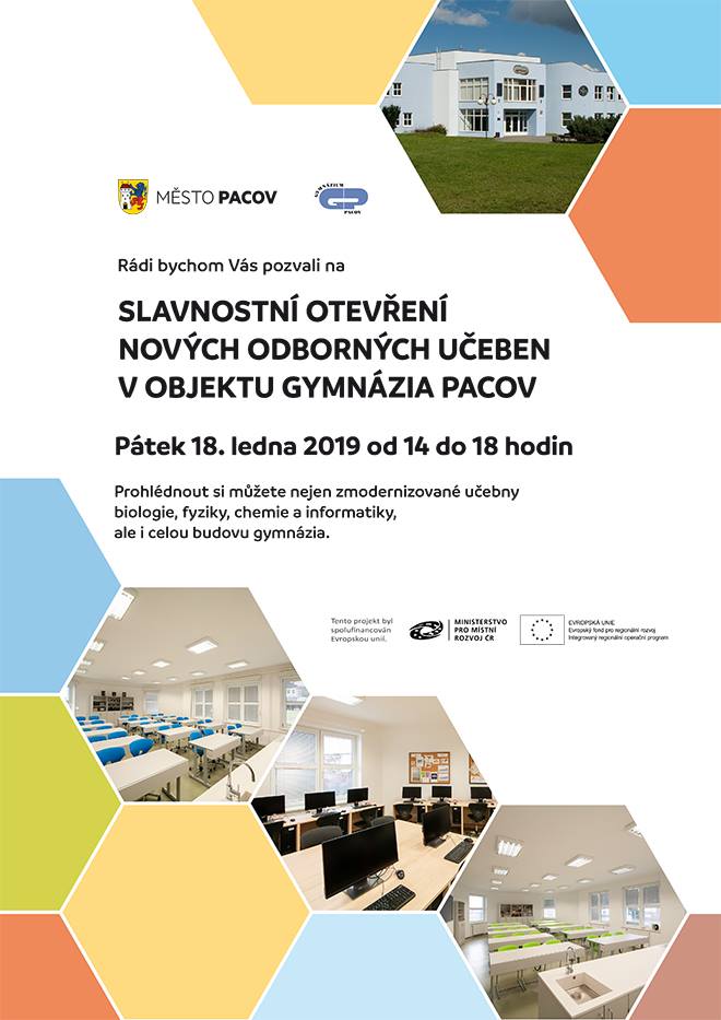 Přijďte se podívat na nově zrekonstruované a zmodernizované učebny fyziky a biologie, na novou chemickou laboratoř nebo učebnu výpočetní techniky. Můžete si prohlédnout celou budovu školy  :-).
