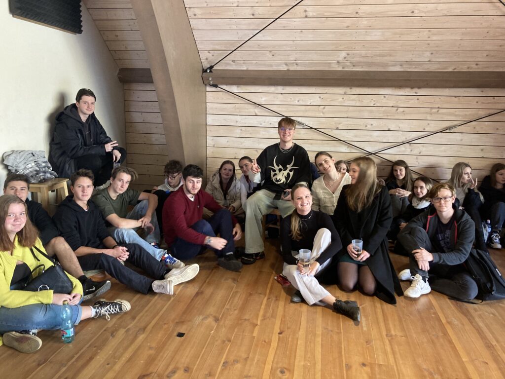 Co je svoboda pro každého z nás? Jaké jsou vnitřní hranice svobody? Co pro mě osobně znamená tento pojem? Na podobné otázky se pokoušeli odpovědět studenti oktávy minulý čtvrtek, jen několik hodin před státním svátkem připomínající události Sametové revoluce, když diskutovali ve skupinkách se svými vrstevníky z budějovického gymnázia v sídle Divadla Continua ve Švestkovém Dvoře. Součástí dopoledního programu bylo také představení Cesta, ve kterém nás herci z hostujícího Divadla DRAK přenesli do 50. let minulého století a nabídli nám poutavou interaktivní podívanou, ve které za doprovodu bebopové improvizace zazněly literární citace z Ginsberga, Ferlinghettiho i Kerouaca. Po debatě s hlavními protagonisty ještě frekventanti zhlédli krátký dokument z cyklu Příběhy 20. století. Máme radost, že jsme poznali vskutku inspirativní prostor na jihu Čech a doufáme, že si podobnou alternativu k výuce brzy zopakujeme.