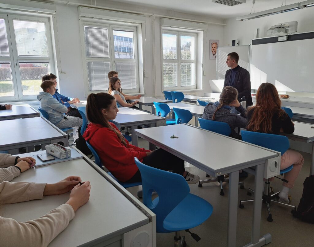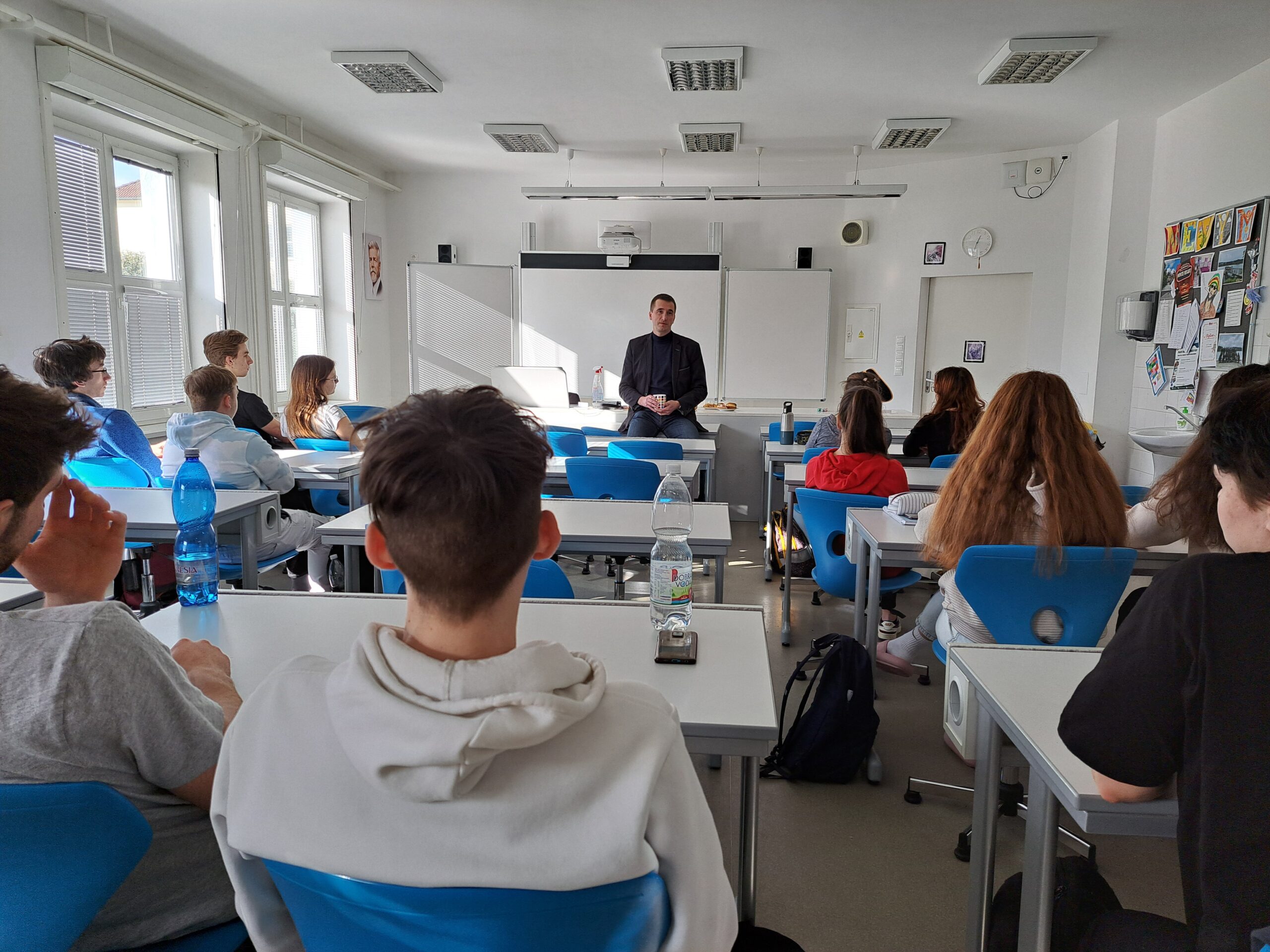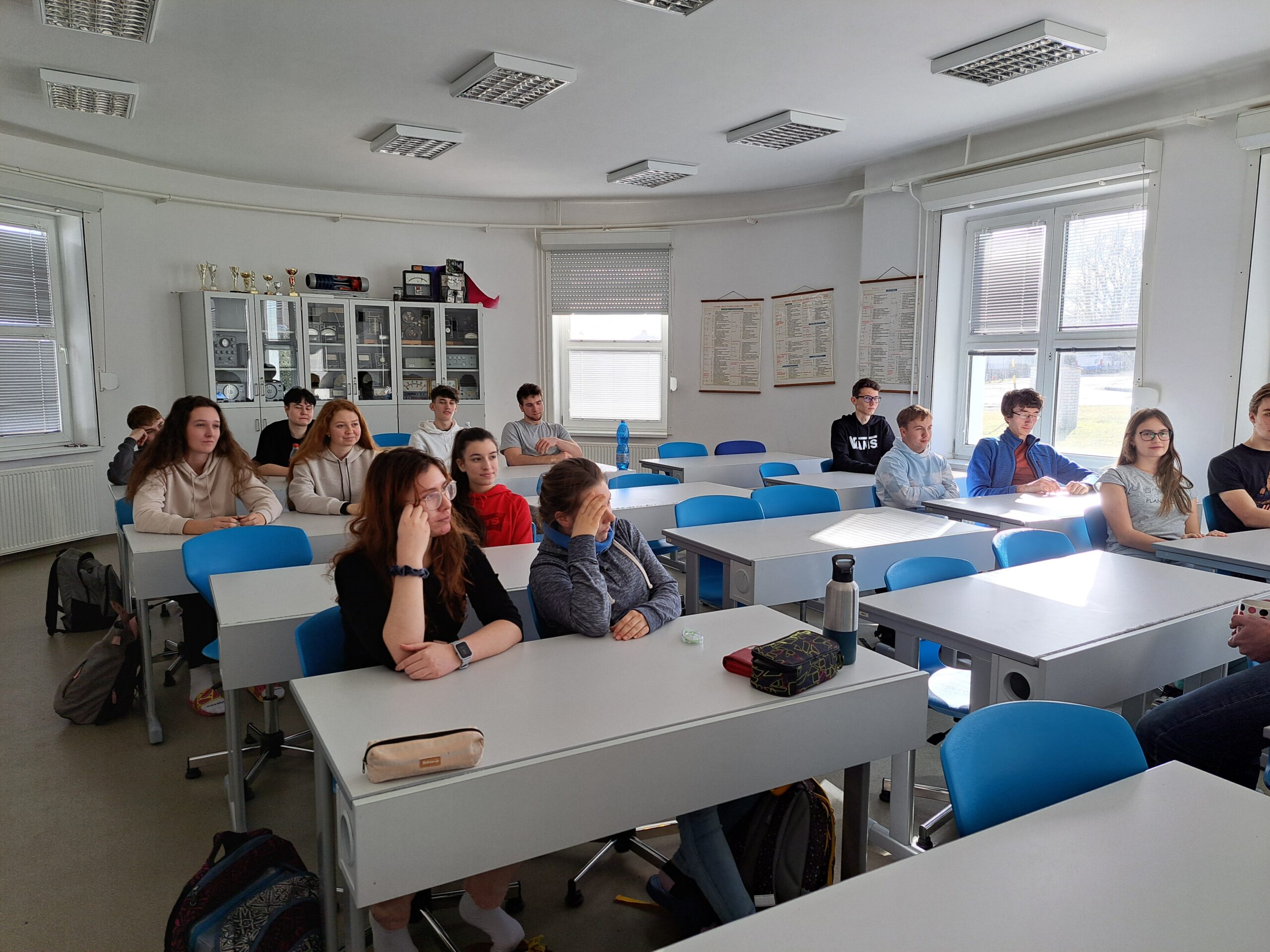 V pondělí 5. února měli studenti septimy příležitost diskutovat s Ing. Lukášem Vlčkem, poslancem Parlamentu ČR a místostarostou Pacova, o významu komunální politiky pro občany. Beseda se uskutečnila v rámci výuky politologie v předmětu Základy společenských věd a navázala tak na učivo o veřejně správě.