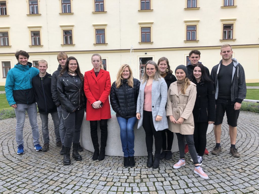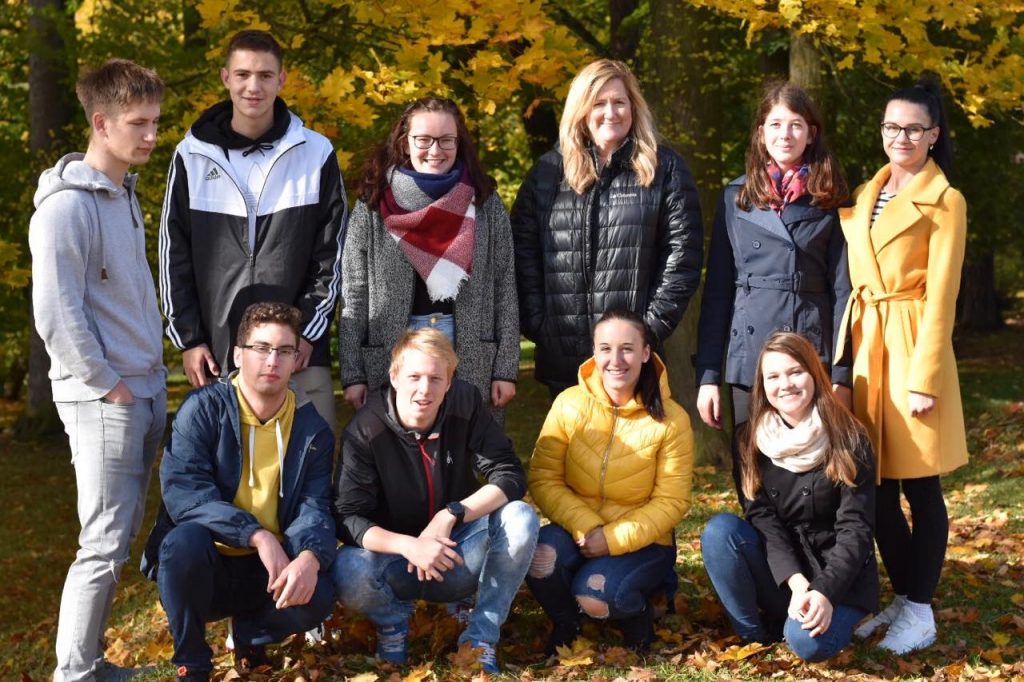 Ve čtvrtek 10. října vyrazila pacovská oktáva na netradiční hodinu angličtiny s rodilou mluvčí Carrie. Hlavním cílem bylo ukázat jí naše rodné město. Procházka začala ve Spálené ulici ukázkou barokních domů, které tvoří nedílnou součást historie Pacova. Dále naše kroky směřovaly kolem areálu ZŠ Za Branou do Zámeckého parku. Zde jsme Carrie zavedli k nejvýznamnějšímu stromu v parku, čímž je „Rozkošák“. Tento neobvyklý strom ji velice zaujal. Procházka pokračovala skrz barevný podzimní park až na náměstí. Ve středu města jsme se zastavili u druhého areálu ZŠ Pacov, u radnice a sochy sv. Václava. Zde se naše cesta chýlila ke konci a ve zbytku času byl prostor říci si něco o možnostech volnočasových aktivit v Pacově. Tímto bychom chtěli Carrie poděkovat za příjemně strávený čas a také doufáme, že ji tato speciální hodina s námi bavila a užila si ji stejně jako my. (Kateřina Kotlíková, Eliška Plášilová)