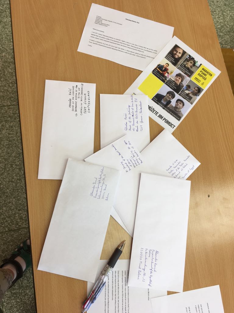 V pátek 20. 12. se studenti z kvarty, septimy a oktávy zapojili do největší lidskoprávní aktivity s názvem Maraton v psaní dopisů, který odkazuje k Mezinárodnímu dni lidských práv (10. prosinec). Letošní Maraton je věnován mladým lidem do 26 let, kterým jsou upírána jejich práva. Ručně psaný dopis poslaný v obálce je v dnešní digitální době nástroj, který má obrovskou sílu a může přispět k tvorbě mezinárodního tlaku na světové autority. Studenti měli možnost se o konkrétních příkladech perzekvovaných aktivistů dozvědět z informačních karet. V dopoledních hodinách napsali podle předložených vzorů osobní dopis, v češtině či angličtině. Někteří pisatelé donesli dopis na poštu osobně, ostatní přispěli na známky. Děkujeme všem, kteří se do téhle bohulibé aktivity zapojili. V době, kdy lidská práva nejsou samozřejmostí, tenhle nemateriální vánoční dárek zahřeje u srdce.