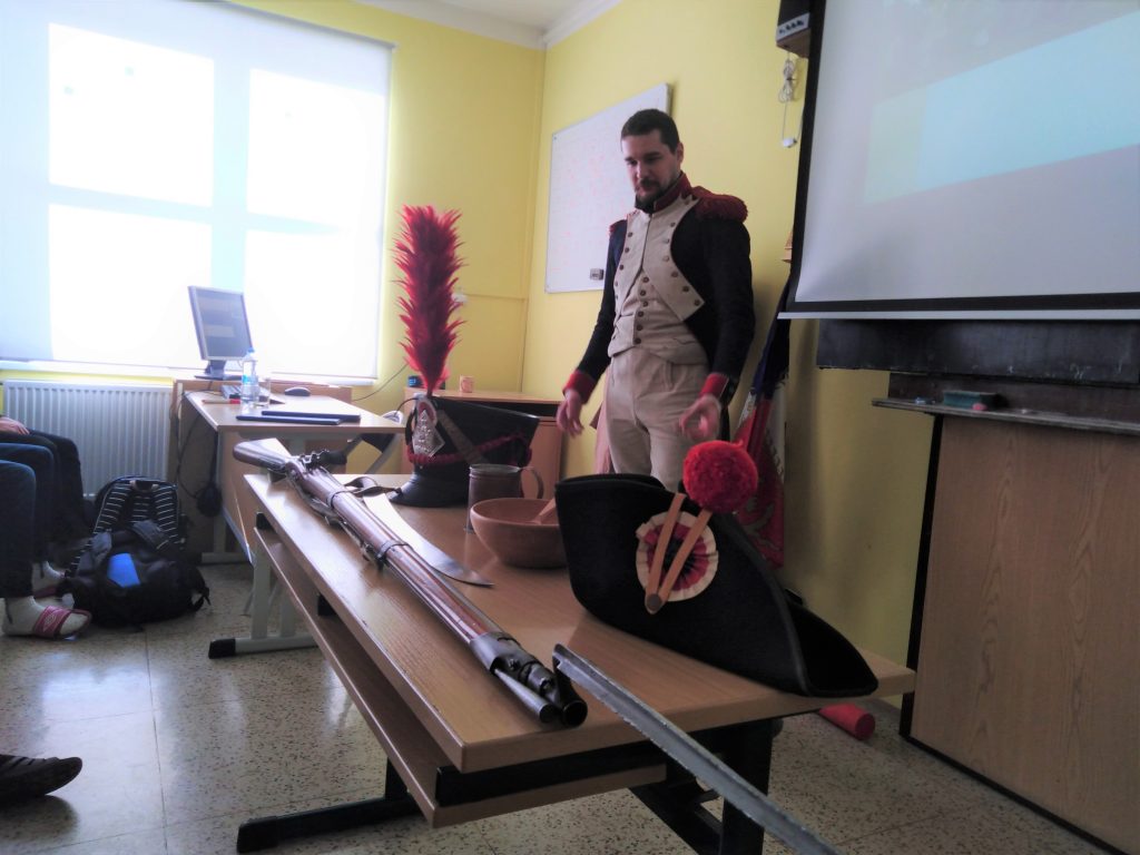 V pátek 6. prosince se na pacovském gymnáziu uskutečnila přednáška a následná beseda s právníkem a odborníkem na napoleonské právo Mgr. Jiřím Cihlářem. Studenti kvarty a oktávy, kteří se přednášky zúčastnili, byli doslova vtaženi do dění na bitevním poli. V napoleonské uniformě totiž o strastech života na bojišti vyprávěl dlouholetý účastník rekonstrukcí napoleonských bitev. Studenti měli možnost si prohlédnout výstroj a zbraně vojáků napoleonské éry, předměty denní potřeby nebo i prapor pluku. Setkání se zapáleným historikem bylo krásným zpestřením pátečního odpoledne a pevně doufám, že nebylo poslední.