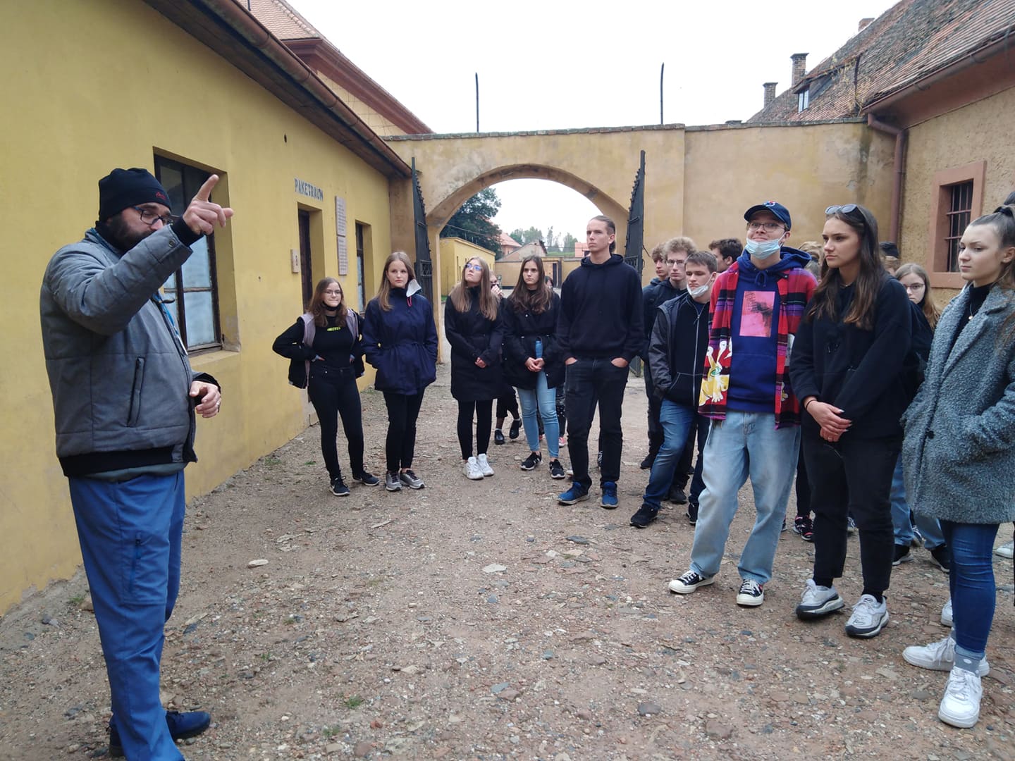 V pondělí 11.10.2021 se uskutečnila exkurze tříd sexty a oktávy do Památníku Terezín. Po příjezdu následovala krátká přednáška a prohlídka expozic terezínského muzea a ghetta. Mohli jsme tak vidět prostory, ve kterých několik let živořili desetitisíce nevinných lidí, ale i místa, kam si chodili pro duchovní útěchu. V odpoledních hodinách jsme se pak přesunuli do prostoru Malé pevnosti, bývalé věznice gestapa, ale také rakousko-uherské policie, ve které byl vězněn např. Gavrilo Princip, člen organizace Černá ruka, který spáchal atentát na Františka Ferdinanda d’Este. Každý přemýšlel nad tím, co nám toto místo odkazuje. Někomu se Terezín vryl do paměti jako místo realizace největší genocidy v dějinách lidstva, holokaustu. Pro některé je Terezín místem, kde docházelo k mučení a popravám lidí, kteří byli v temných dobách historie naší země ochotni zaplatit za její svobodu cenu nejvyšší.