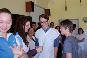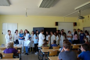 Do třídy nových „pacientů“ našeho modrého ústavu nastoupil sbor lékařů – psychiatrů z oktávy, aby provedl důkladnou vizitu. Každý nováček si vylosoval jméno svého „ošetřujícího lékaře“, který mu položil záludnou otázku. Při správných odpovědích tercie získávala různé indicie, které by jim měly pomoci dobře se aklimatizovat na GyPa. Možná, že některým indiciím noví studenti zatím úplně neporozuměli, ale zajisté se jim každá z nich bude dříve či později hodit.