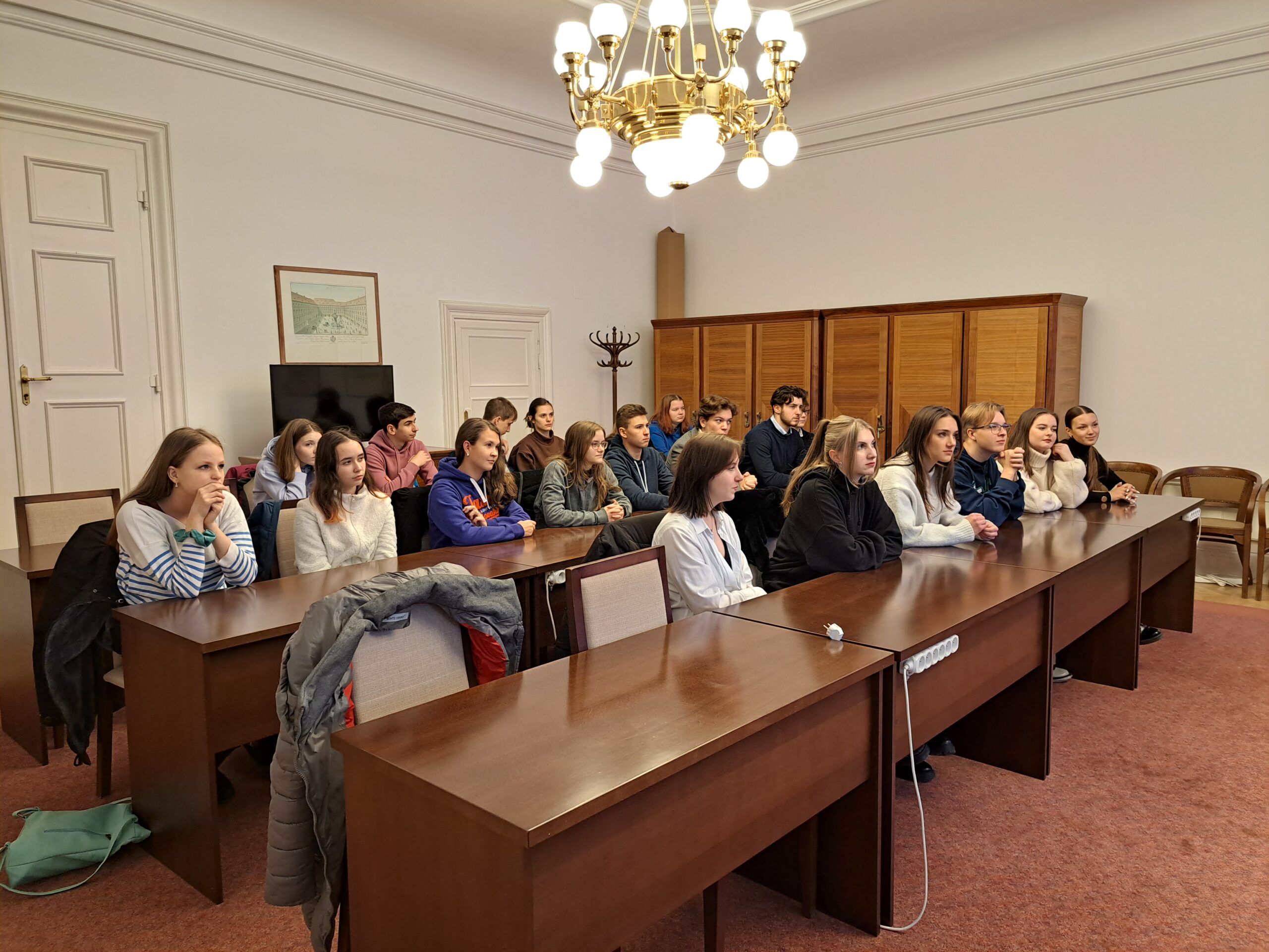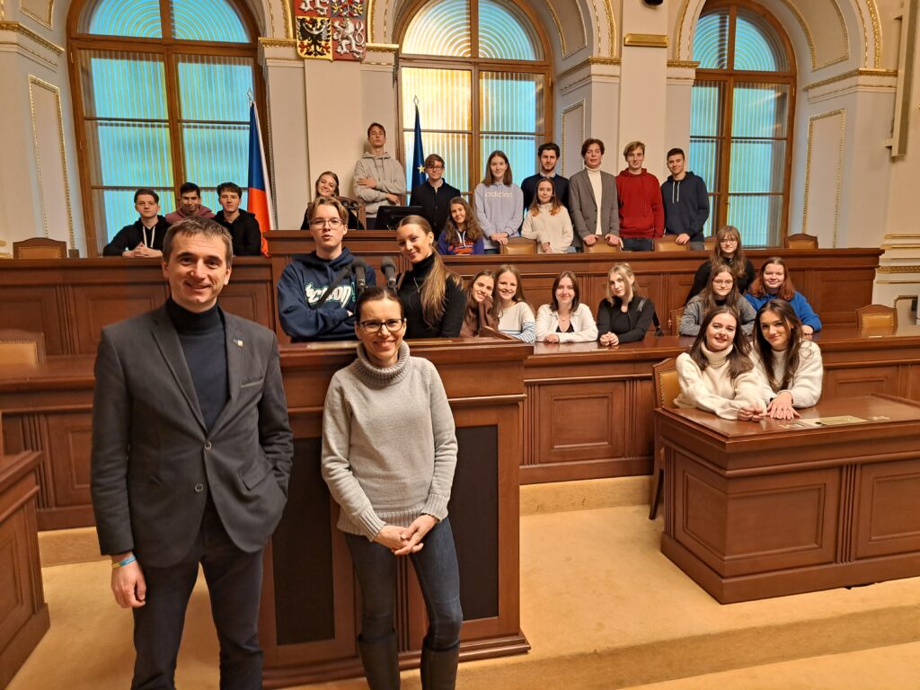 Den začal v Thunovském paláci, sídle Poslanecké sněmovny Parlamentu České republiky. Přijali jsme tím pozvání Ing. Lukáše Vlčka, poslance a místostarosty našeho města a zároveň absolventa pacovského gymnázia. Toto milé setkání obohatilo studenty o informace týkající se práce poslance, prohlédli jsme si prostory, které známe z jednání zákonodárců, posadili se do poslaneckých lavic a nakonec přijali pozvání na oběd.