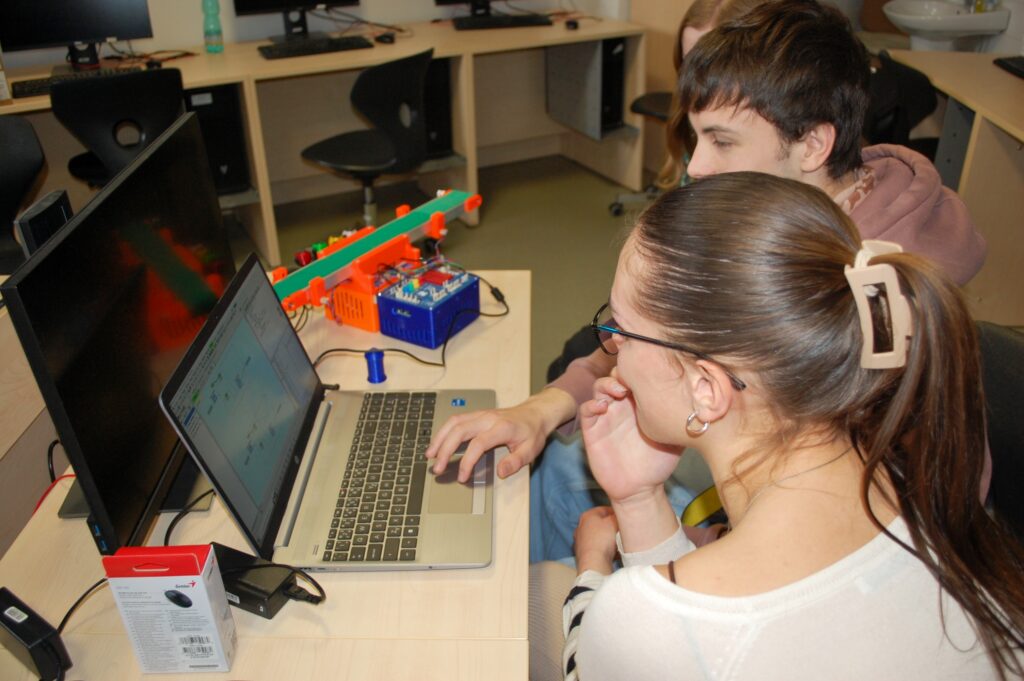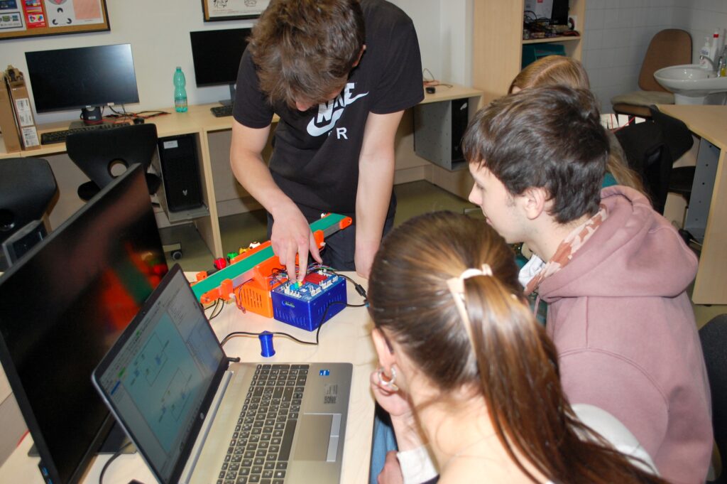 Firma SmartBit přivezla programovatelné automaty, které pracují a programují se stejně, jako automatizované výrobní linky v podnicích (tzv. Průmysl 4.0). Žáci si vyzkoušeli zapojení digitálních vstupů (čidel a ovladačů) a výstupů (světel a motorů) a pomocí software Mosaic naprogramovali základní funkčnost dopravníku s optickými závorami. Gymnázium také zakoupilo jednu programovatelnou stavebnici, aby si tvorbu automatizovaných systémů mohli žáci vyzkoušet kdykoliv.