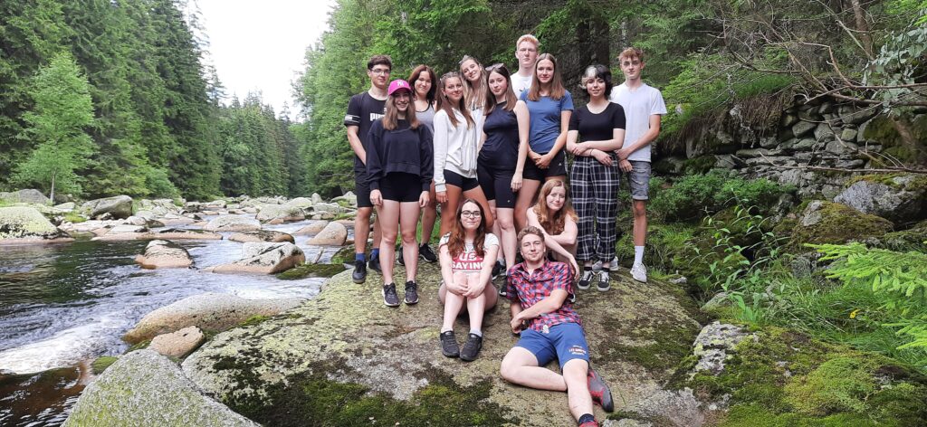 Všechny překážky jsme každopádně zdolali, na místo úspěšně dorazili a naši milování učitelé zjistili, že se mají stále co učit. Jako například náš slovník. Co to znamená vajbovat, feelovat, bembelín a cápek ale pochopili rychle a vypadalo to, že se i dobře baví. Další výzva bylo naše ubytování, ale řekli bychom, že nás možná nedostatek toaletního papíru a nutnost požádat o něj své spolužáky akorát stmelily. Na Šumavě jsme si také udělali spoustu krásných fotek s tématem „ahoj mami“ a potkali jsme nám podobnou smečku, tedy vlky, kteří vypadali, že čekali jen a pouze na náš příjezd. Výlet končil s jedovatými kousanci od různých ovádů, s bolavými nožičkami a sem tam se spánkovým deficitem, ale také s úsměvem na tváři a s novými vzpomínkami.