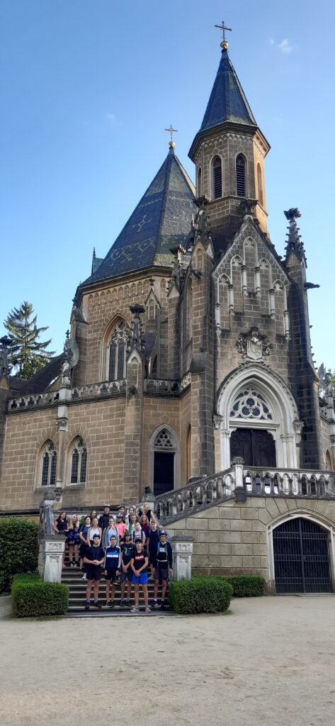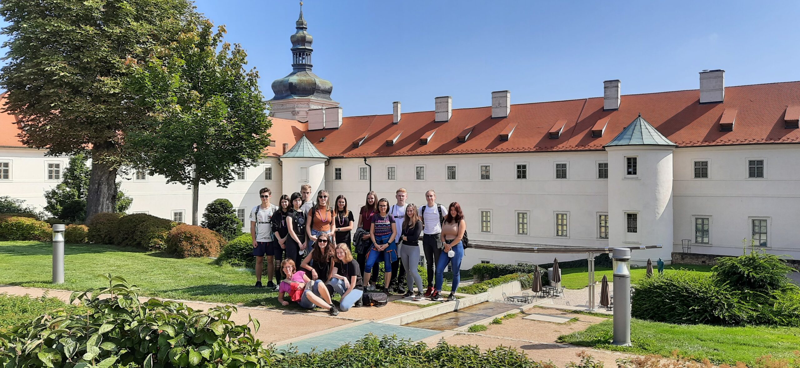 Ve čtvrtek 2.9. 2021 jsme se vydali na náš poslední školní výlet. Naším cílem byla Třeboň, kam jsme vyrazili vlakem. Ubytovaní jsme byli v jednom z místních penzionů. Naše aktivity zahrnovaly výlet na kolech, procházku v okolí Třeboně, projížďku parníkem a návštěvu zámku. Někteří zájemci využili možnost koupání ve slaném bazénu místních lázní, ale největším zážitkem byla exkurze do místního pivovaru. Náš poslední výlet jsme si užili a určitě na něj budeme dlouho vzpomínat.