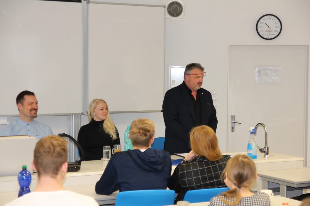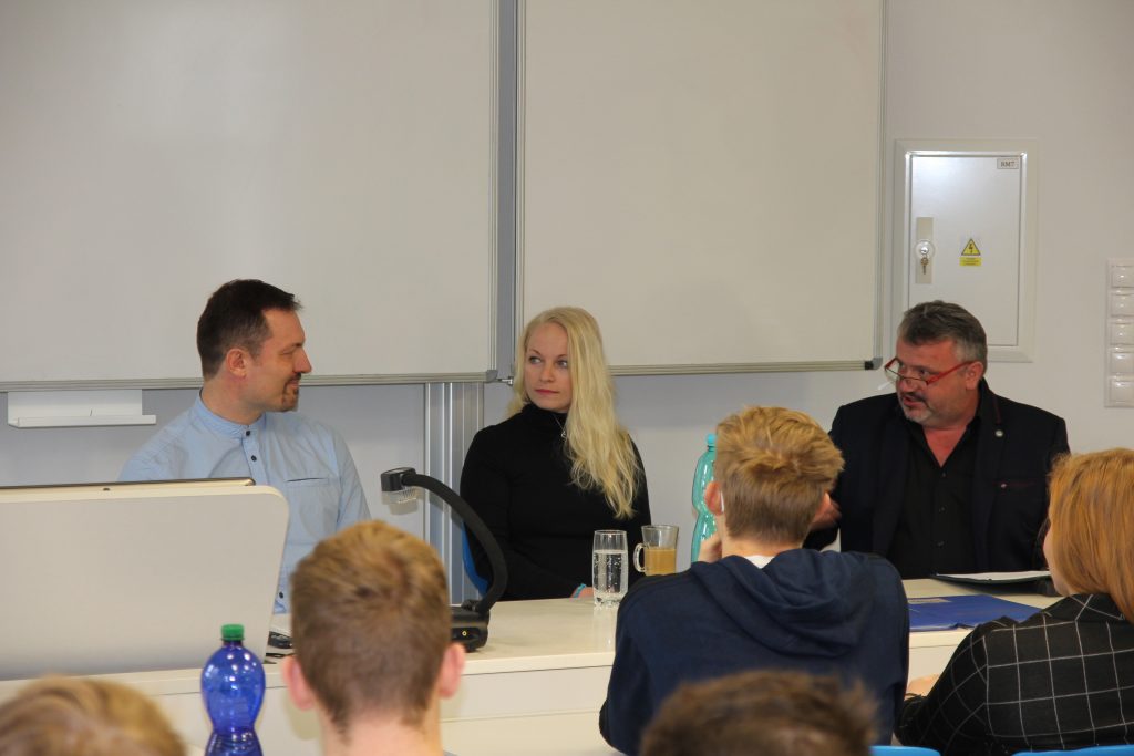 V úterý 3. března 2020 se na gymnáziu uskutečnila již druhá beseda za účelem poznávání zajímavých osobností z našeho okolí. Role moderátora se opět ujal pan Jan Kamír a jeho dvěma hosty byli tentokrát absolventi pacovského gymnázia MUDr. Ondřej Kubínek, primář anesteziologicko-resuscitačního oddělení pelhřimovské nemocnice, a fyzioterapeutka Mgr. Kateřina Divišová. Oba pozvaní nám vyprávěli o svých studiích na vysoké škole, profesních začátcích i osobním pohledu na jejich obor. Celá přednáška byla velice obohacující a inspirující, nejen pro ty z nás, kteří se chtějí po maturitě vydat podobnou cestou.